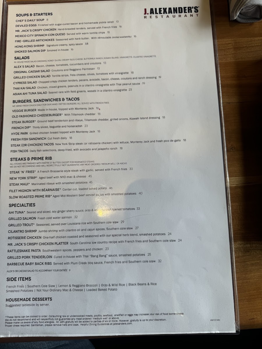 Whether you’re seeking a romantic dinner or a casual lunch, J. Alexander's guarantees an experience defined by culinary excellence and memorable service. Come and indulge in the flavors that keep patrons returning time and again!